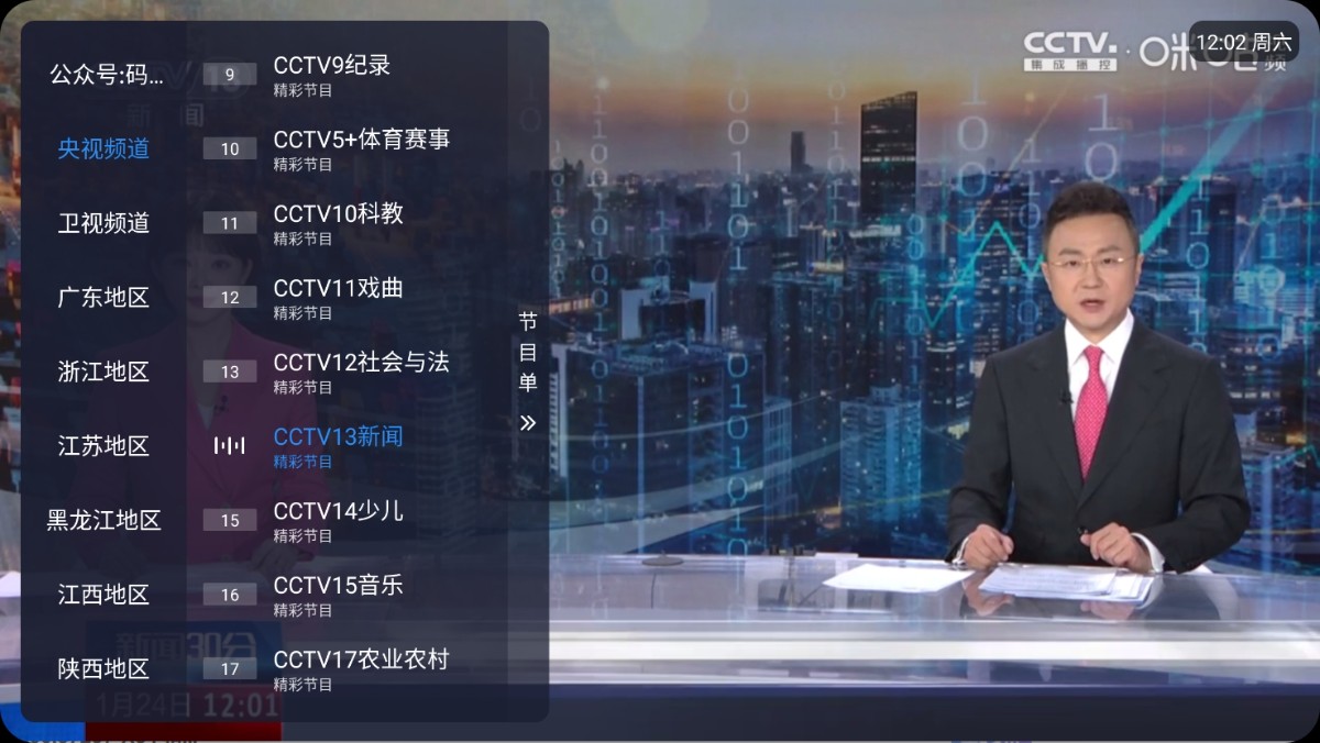 综合频道:CCTV-1(综合)、CCTV-13(新闻)