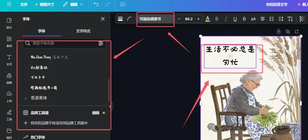 添加文字,输入刚才我们做了断句的文案,然后给设置一个应景的字体