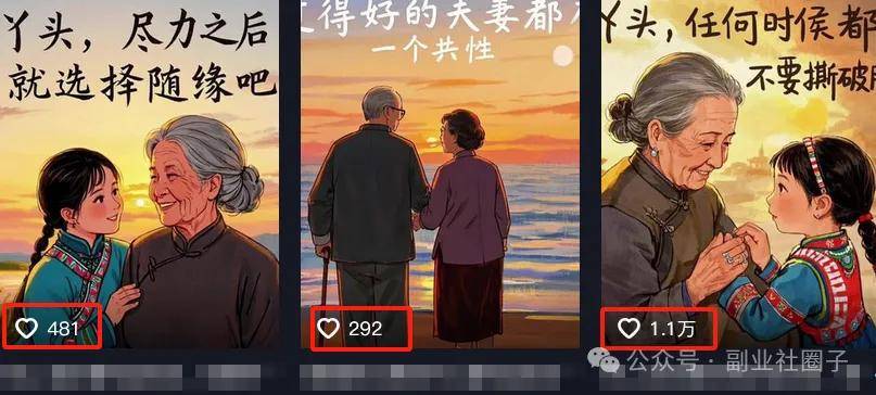 更妙的是,这类视频制作出奇简单,用现有的AI工具,5分钟就能生成一篇爆款视频,搭配精心挑选的治愈文案,这种极简风格反而形成了强烈记忆点。