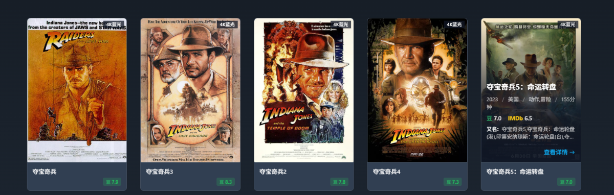 夺宝奇兵系列五部合集(1981-2025)4K2160P典藏版【英语外挂中字】单部55G共278G