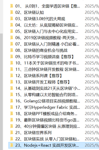 23套区块链教程合集是一套面向零基础至进阶学习者的系统化区块链知识宝库,涵盖从底层原理到实战应用的全方位内容。合集精选23套优质课程,横跨区块链基础概念、加密算法、共识机制(PoW、PoS、DPoS等)、智能合约开发、DeFi、NFT、链上数据分析与数字钱包安全等核心领域。