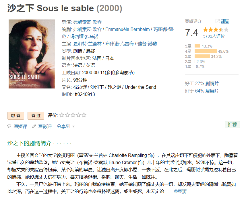 ❤️【法式心理悬疑佳作】沙之下【2000】BD1080P [外挂中文字幕] [7.9G]